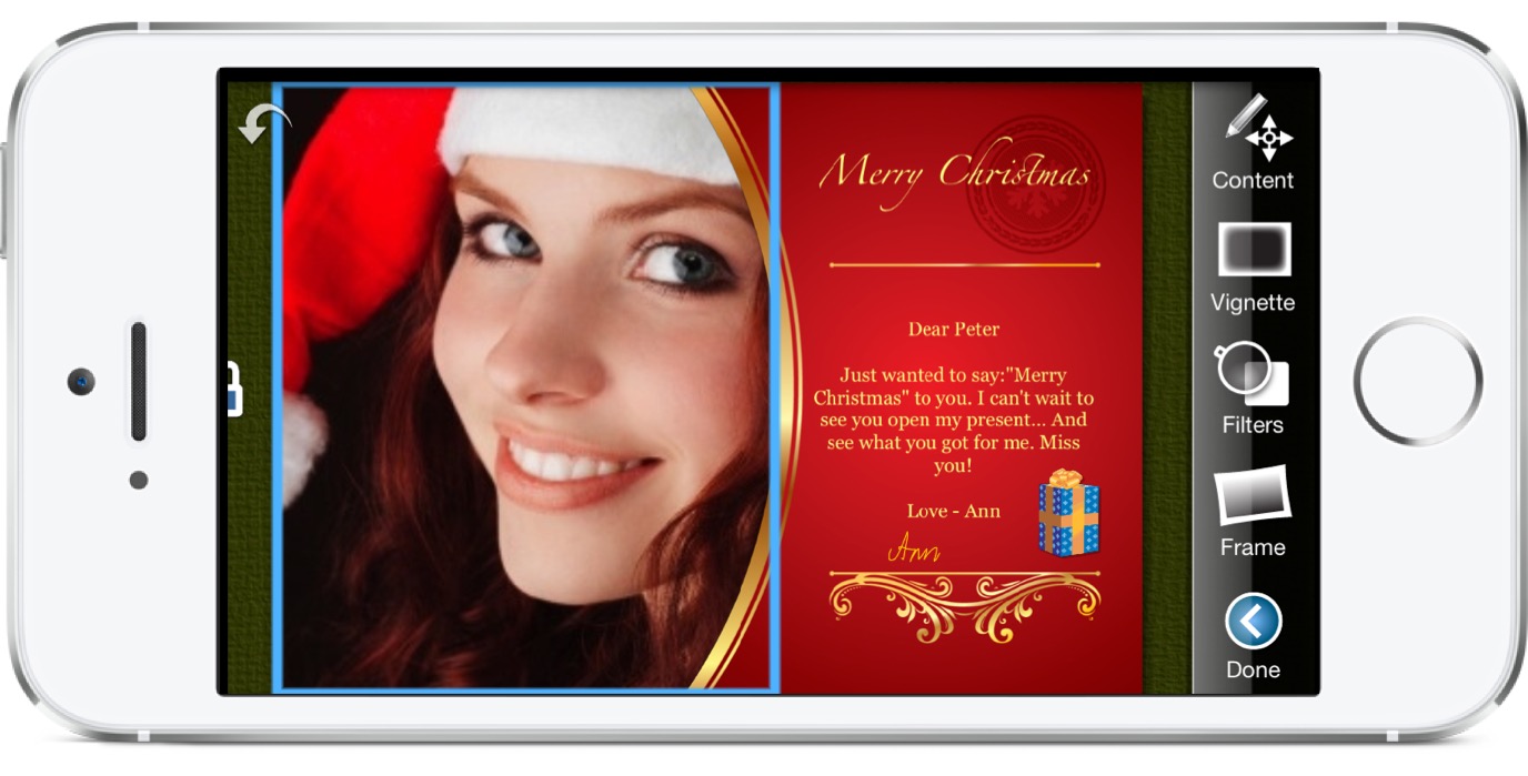 Christmas Lifecards includes several simple photo filters that you can apply to your cards. Use sharpen, gray, sepia and more filters right from within Lifecards.Text