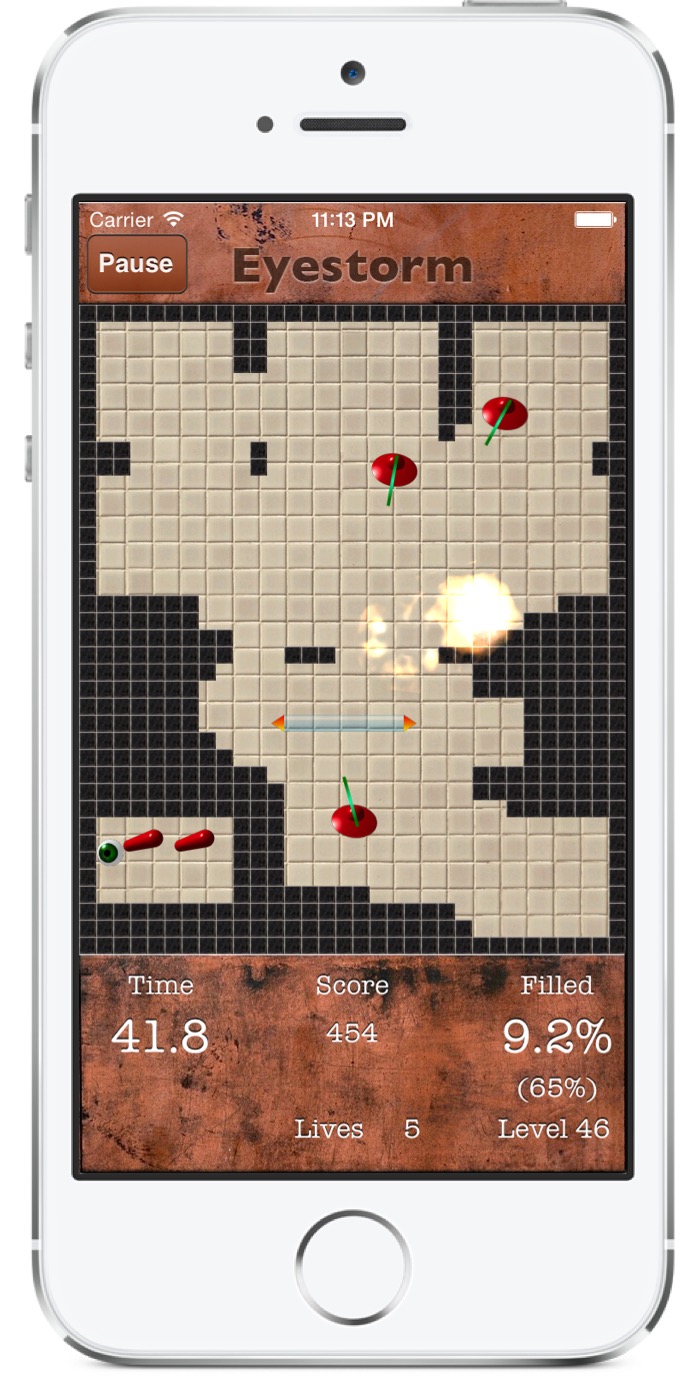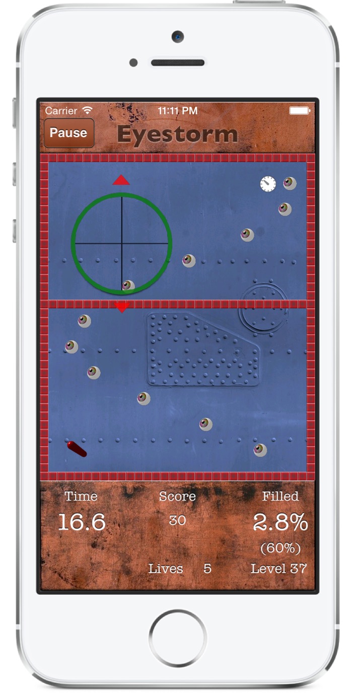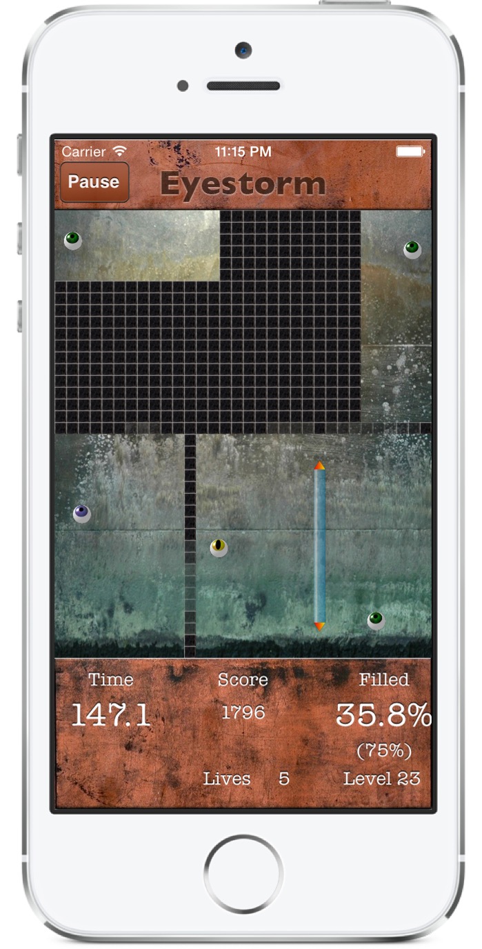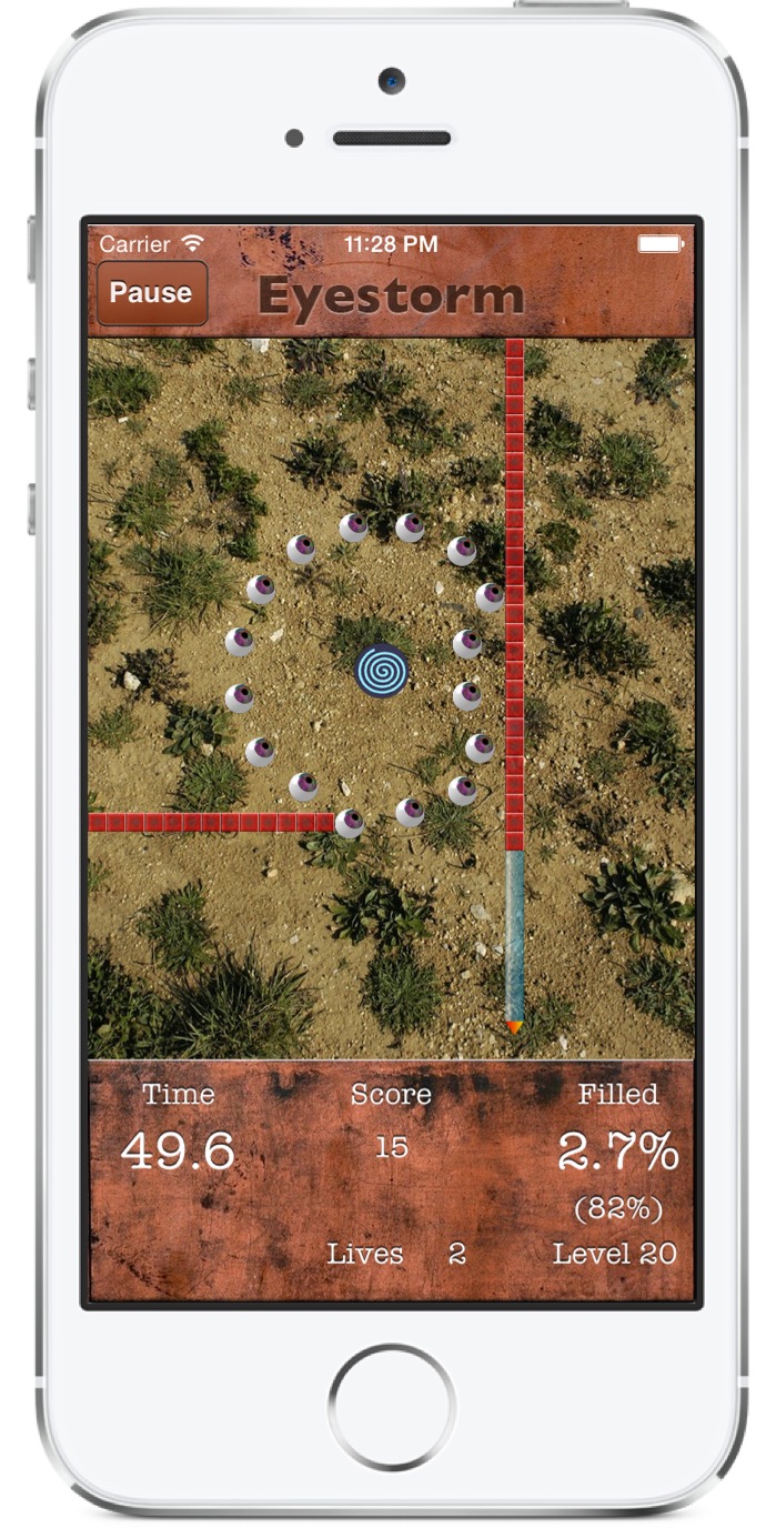 The objective of the game is to fill a certain percentage of the screen with blocks without getting hit by the moving eyes. The gameplay mimics that of classics such as Styx and Xonix. Once you have filled the required amount, you will move on to the next level of the game.