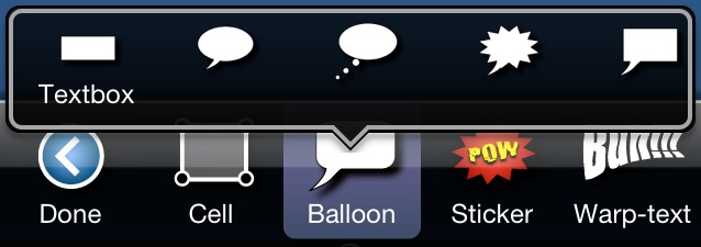 10. Speech balloonsTap the "Add" button on the bottom of the screen to add a speech balloon. Simply drag the speech balloon you wish to insert onto the screen.