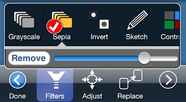 FiltersTo apply a filter to a photo tap the "Filter" button. If more than one filter is applied Lifecards will attempt to apply each filter succesively.