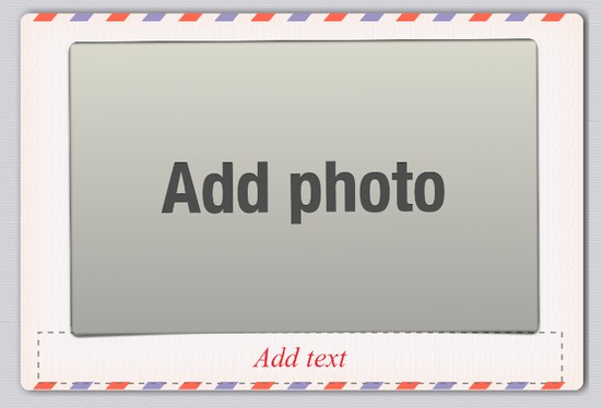 Once a template has been selected you can tap on the "Add Photo" and "Add text" areas to insert photos from your photo-album and enter long and short text messages.