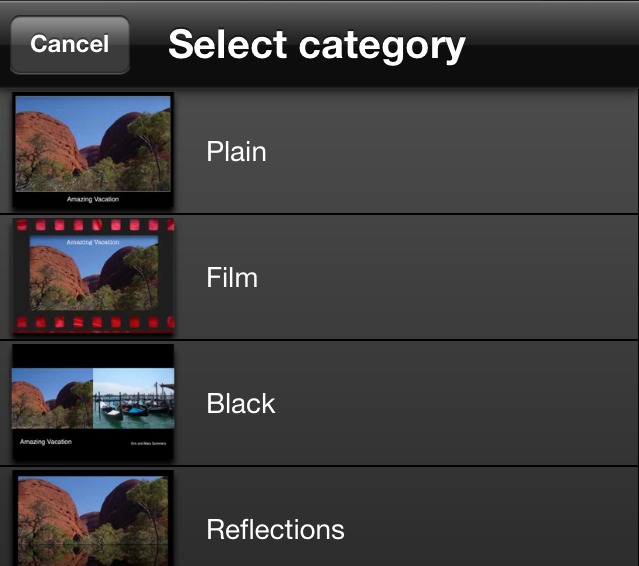 At this point you can swipe on the screen to browse the different templates. Vertical swipes will change the category. Horizontal swipes will change the template within each category. Select a card by tapping "Done". You can also tap "Themes" to see a list of templates to choose from.